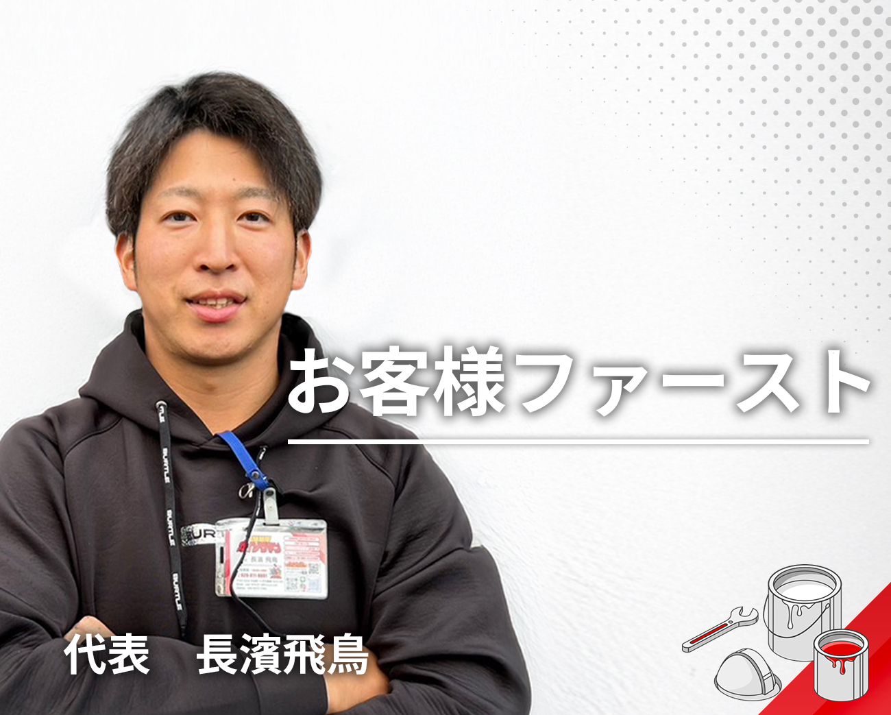 | 事業内容 | 外壁・屋根塗装 外装リフォーム 内装リフォーム 防水工事 足場工事 屋根工事 外構工事 シロアリ防除工事 |